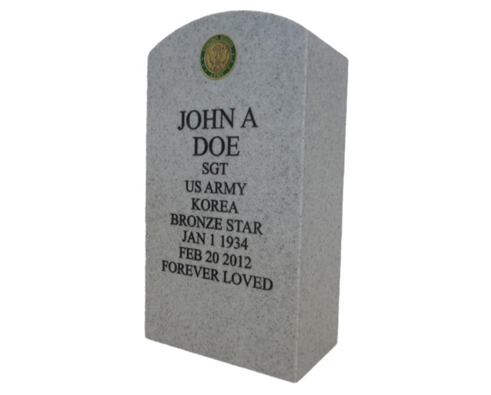 This cremation urn is hand-made and customized by us, and is intended to replicate headstones found in Veteran Cemeteries throughout the world. We use a solid surface material to create these urns, and the result is virtually seamless. The bottom of the urn slides to the side to gain access to the main cavity, and we will include a tube of sealant so that you can secure the bottom when you are ready. This particular urn type provides for a military branch medallion (also included) to be secured into the front of the urn.